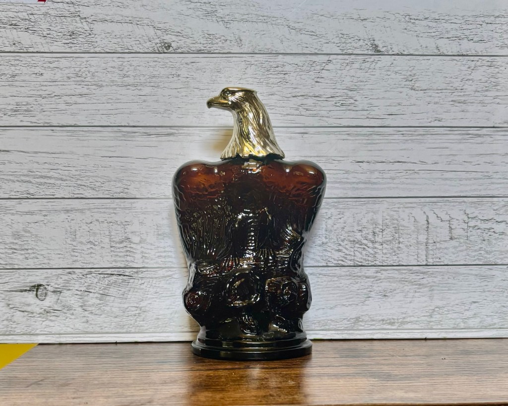 Crafted with detailed wings, regal stance, and rich amber-brown glass, this collectible captures the spirit of vintage masculinity and American heritage. Whether displayed on a shelf or tucked into a collector’s cabinet, it commands attention.