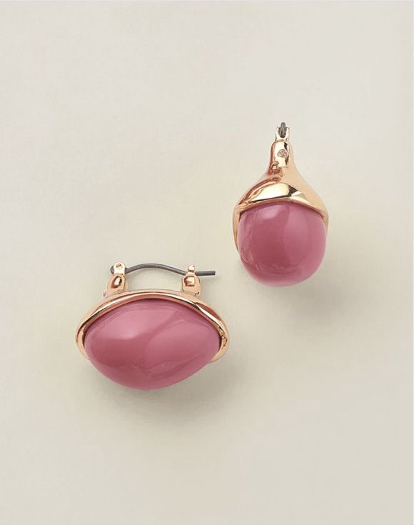 Add autumn’s fiery warmth to your look with a bold pop of color. Deep red curved stones, nestled in a radiant goldtone setting, create a refined silhouette that captures the season’s elegance and timeless charm.